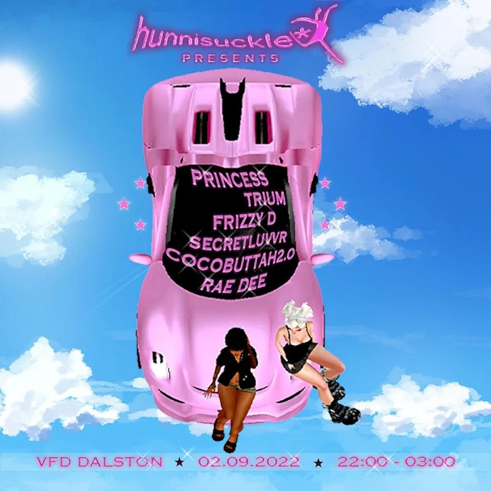 Queer based DJ in London and founder of Hunnisuckle which she now co-runs with with Princess Trium. Frizzy D is a Voices Radio resident and has held down DJ slots across the UK including Pxssy Palace, Body Movements, Margate Pride, Hootanannays and Dalston Superstore to name a few. Expect global sounds and club classics.