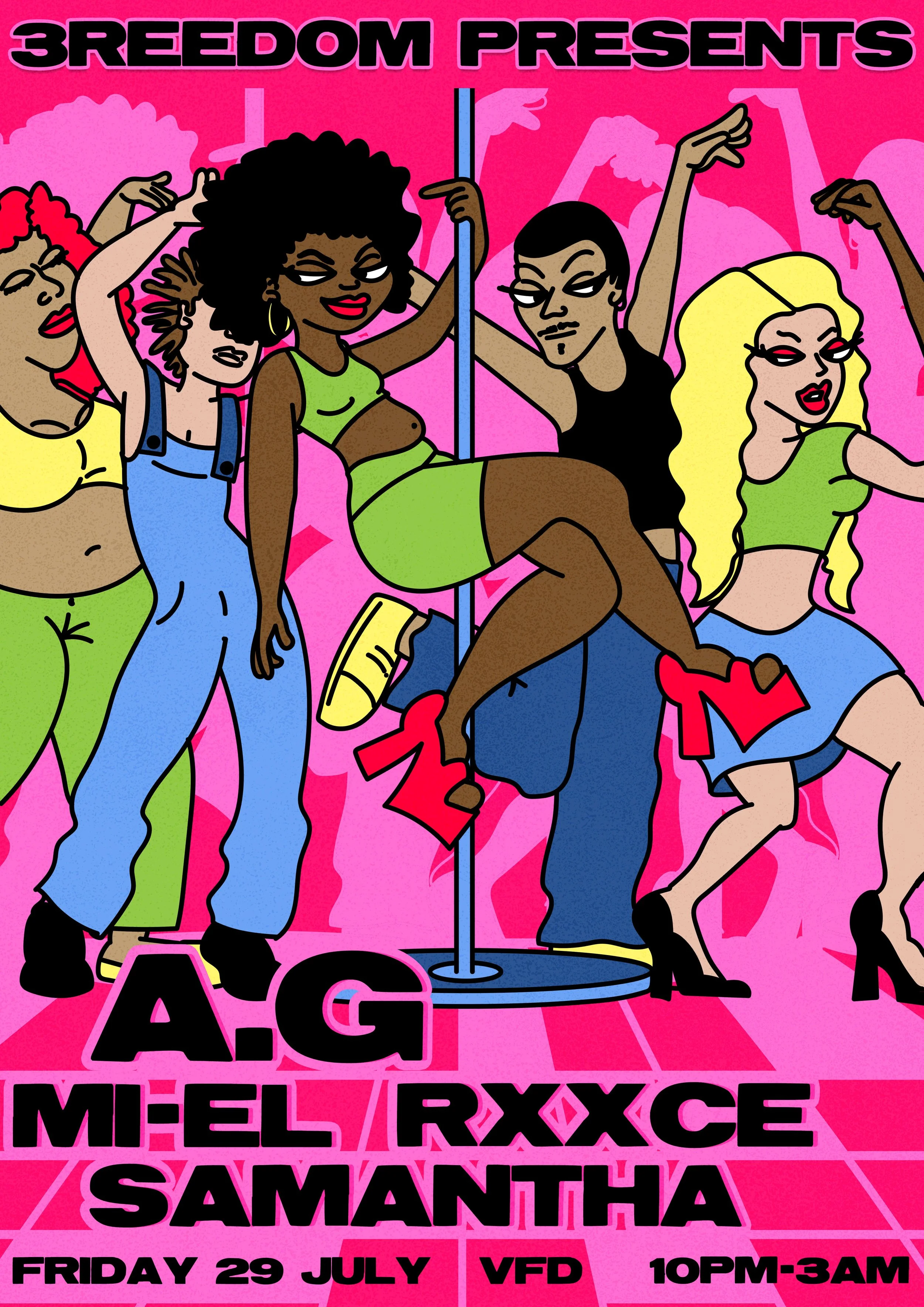 3reedom is a queer focused club night open to everyone that combines multi-genre dj sets, performances and visuals from artists.