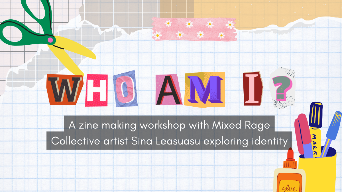 A zine making workshop with Mixed Rage Collective Artist Sina Leasuasu exploring identity.